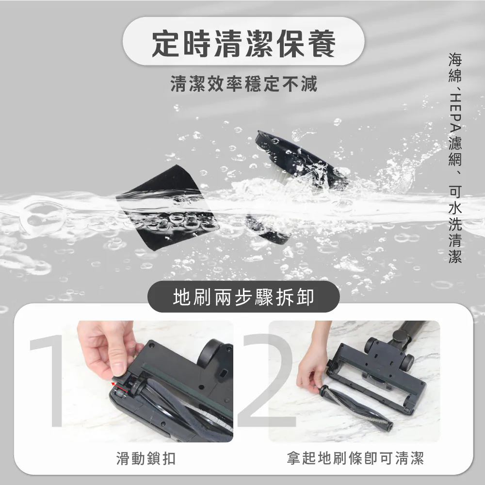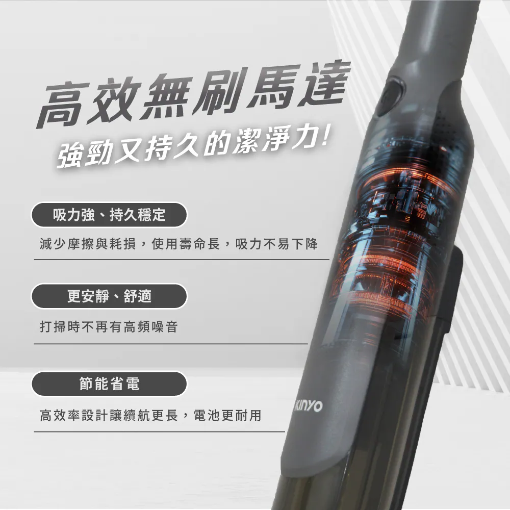 - 搭載高效無刷馬達,運轉穩定、吸力持久不衰
