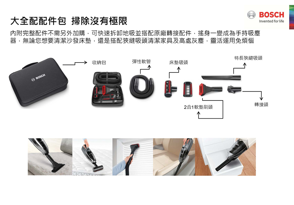 BOSCH 博世 手持式吸塵器Move Lithium 21.6V 含配件包 BHNL2140TW