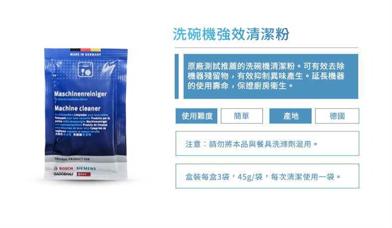 BOSCH 博世 洗碗機專用保養清潔粉組 (3入) 盒裝 (45g/包 x4)